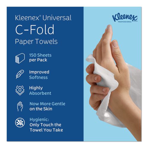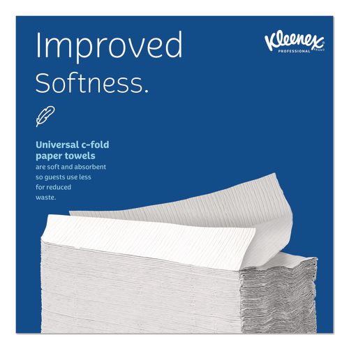 When you're looking for a premium paper towel for your business – in a kitchen, office or restroom – Kleenex® C Fold Paper Towels are a great choice. Even though they're economical, they are packed with innovations that help keep your commercial and business restrooms efficient. The C-fold design is made especially for smart stacking and unfolding, and the built-in Absorbency Pockets™ (to soak up a lot of water fast) mean that one of the C-fold towels can typically get a drying job done. The unfolded towel measures 10.13 inches wide x 13.15 inches long, and is compatible with most universal tri-fold and C-fold dispensers (sold separately). You'll want to buy them in bulk so you'll never run out! When your guests, clients and employees see the trusted Kleenex® Brand logo, they'll know you care enough to offer the very best products.