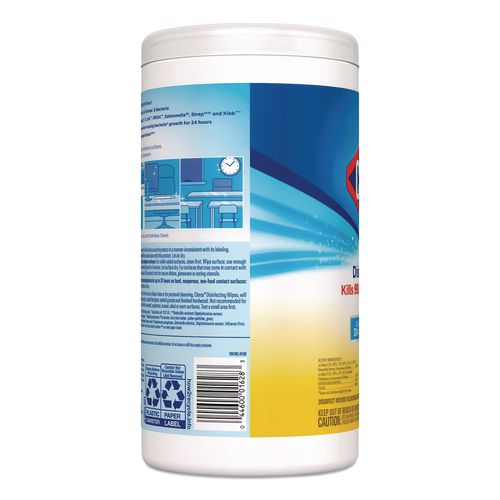 Clorox® Disinfecting Wipes clean, disinfect and remove allergens leaving behind a pleasant scent. Disinfecting Wipes clean and disinfect with antibacterial power that kills 99.9% of viruses and bacteria that can live on surfaces, including COVID-19 Virus, staph, E. coli, MRSA, salmonella, strep and Kleb on hard, nonporous surfaces when used as directed. These all-purpose disposable wipes remove common allergens, germs and messes on surfaces like kitchen counters, bathroom surfaces and more. Disinfecting Wipes are safe to use on a variety of surfaces including non-food-contact surfaces in the home, office, daycares, schools, hotels, restaurants and more. Use as directed. Allow product to air dry.