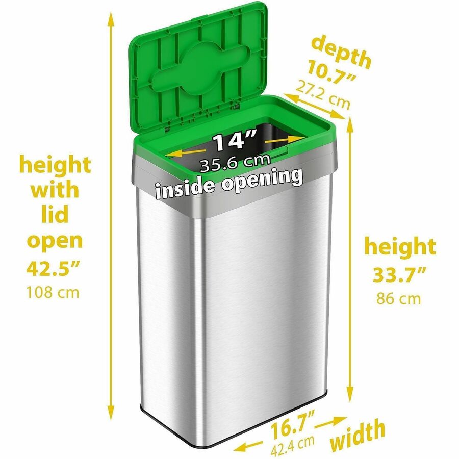 Push Button Opening - 21 gal Capacity - Rectangular - Smudge Resistant, Fingerprint Proof, Easy to Clean - 34" Height x 10.3" Width x 16" Depth - Stainless Steel - Silver - 1 Each