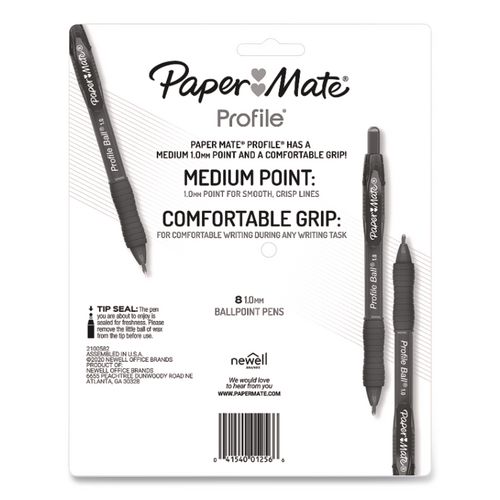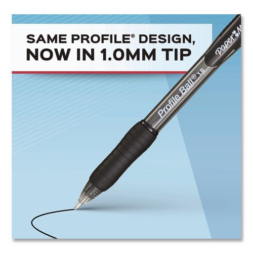 Experience fluid, effortless writing with the Paper MateĀ® ProfileĀ® Retractable Ballpoint Pen. The bold ink dries quickly to help reduce smudges for tidy, clean writing, while the click-advance retractable tip protects pockets and purses. With its smooth-flowing ink and soft contoured grip, this pen keeps you comfortable during extended writing sessions.