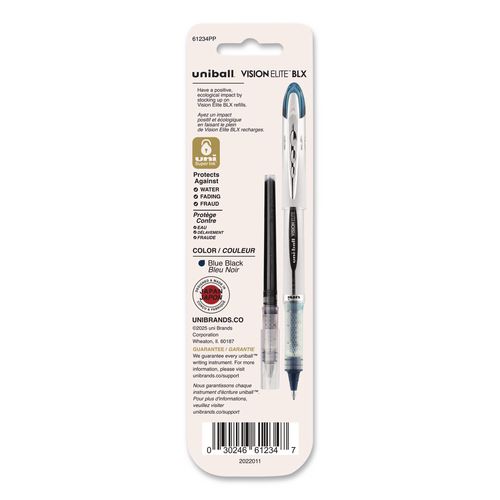 Give your writing a boldy infused flavor with Vision Elite BLX Rollerball Pens from uni-ball featuring a bend-resistant stainless steel bold tip and tungsten carbide rollerball. Capped roller pens deliver smooth, intense lines with unparalleled definition - useful for note taking, list making, signing checks and legal documents, and even uniquely embellishing creative writing projects. Innovative uni Super Ink technology effectively entraps the gel ink into the paper, producing fraud, fade and water-resistant documents that resist check washing or bleaching. These Vision Elite pens have a special design that withstands cabin pressure variances without leaking, making them useful for travelers. Exclusive Uni-Flow Ink System ensures a consistent, delightfully fluid writing experience, and a translucent window ensures that you don't run out of ink unexpectedly. These sleek and modern roller pens come in an assortment of black ink infused colors, adding an element of drama to your everyday tasks and creative writing projects - no matter the altitude.