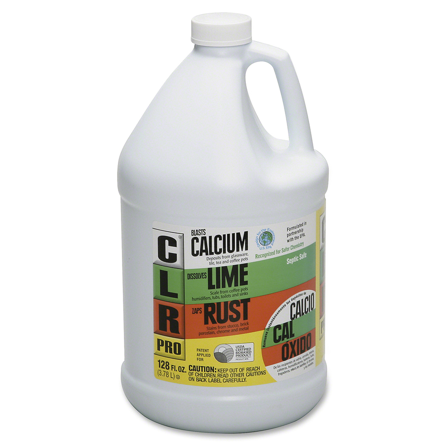 | Marketing Information | Calcium Lime Remover (CLR) is a powerful formula that eliminates built-up mineral deposits and eradicates rust stains. It is perfect for use on tubs, shower heads, glassware, sinks, fiberglass, humidifiers, dishwashers and more. USDA Biopreferred Program Certified remover comes in a bottle with a convenient handle that makes pouring easy. |