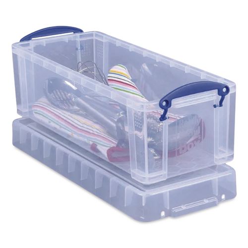 Store files, sports equipment, toys, bedding, decorations, office supplies and more. Made of durable polypropylene, this bin features reinforced sides for enhanced compression strength, so that it maintains its shape when stacked. Flat bottom and recessed, flat lid deliver increased rigidity, while ensuring stacking stability. Snap-tight lock closes with a satisfying, audible snap to let you know that your bin's lid is properly fit. Clear body allows you to check your bin's contents with having to open it.