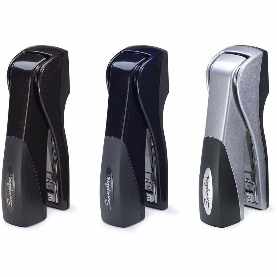 | Marketing Information | Compact stapler is ergonomically designed for handheld performance. It stands vertically or sits horizontally. It loads half strip of 105 staples. Breakthrough design delivers jam-free performance. Fasten 2 to 25 sheets of 20 lb. paper with Swingline Speed-point Premium Staples (sold separately). Durable metal construction delivers maximum durability. |